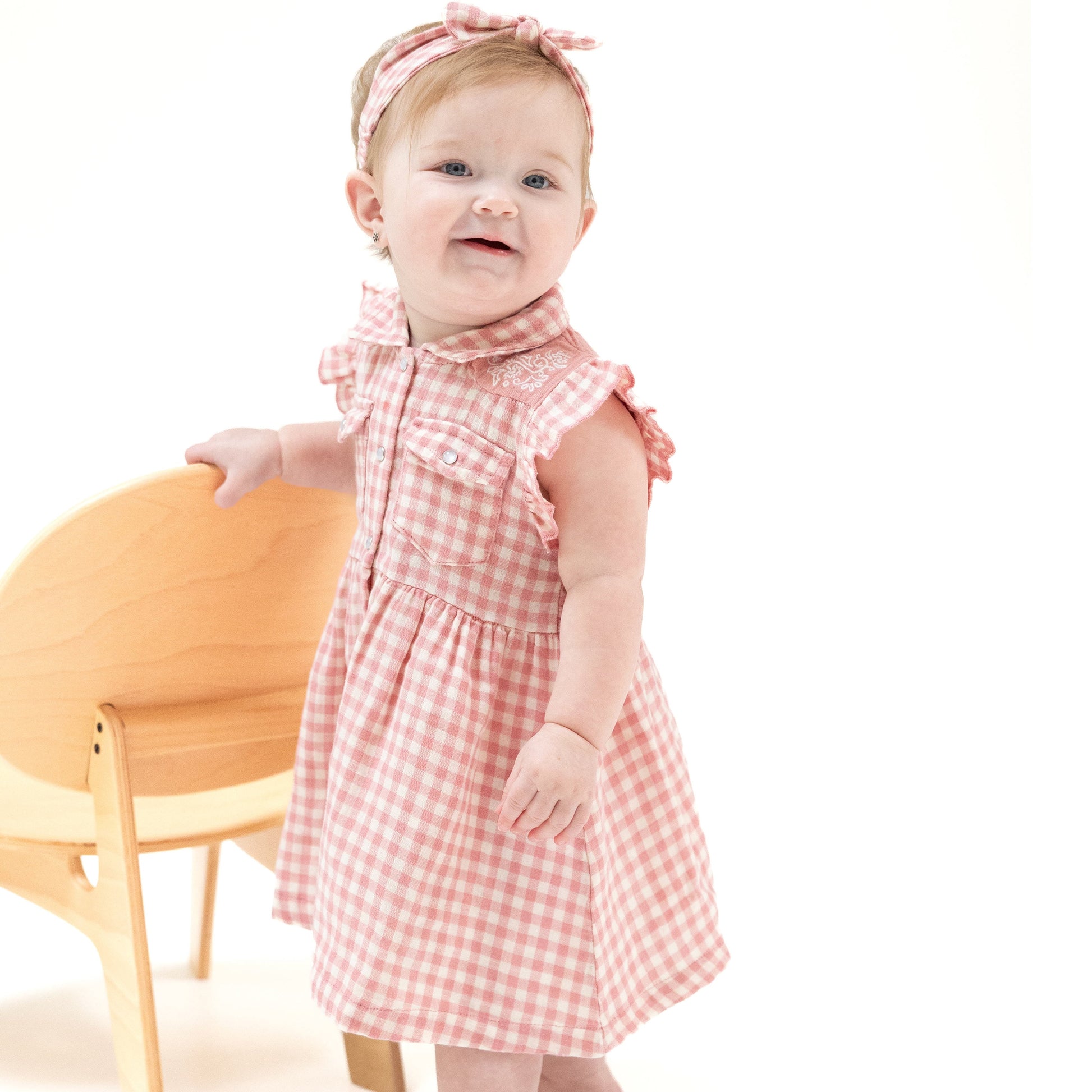 Yeehaw! Dress your little one in classic Western style with our Pearl Snap Dress, featuring authentic snaps and a playful “Howdy” embroidery on the back. Made from soft organic cotton muslin, this dress pairs perfectly with a matching diaper cover for the tiniest cowgirls. Note: 2T–4T available as dress only.