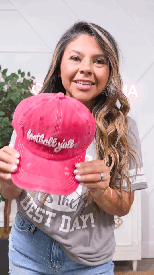 White Football Y'all Embroidery on Bright Red Hat
