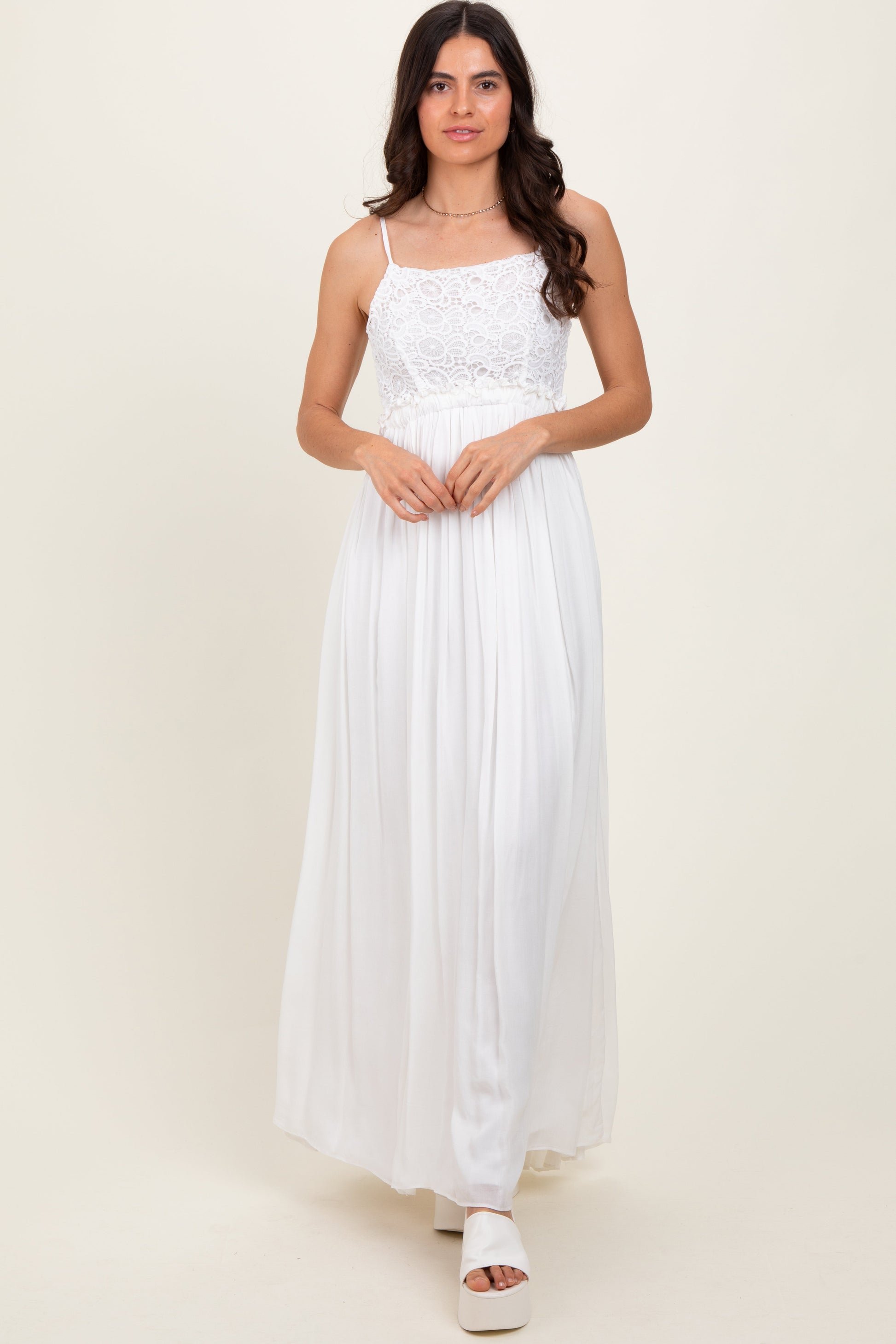 White Lace Bodice Cutout Tie Back Maxi Dress