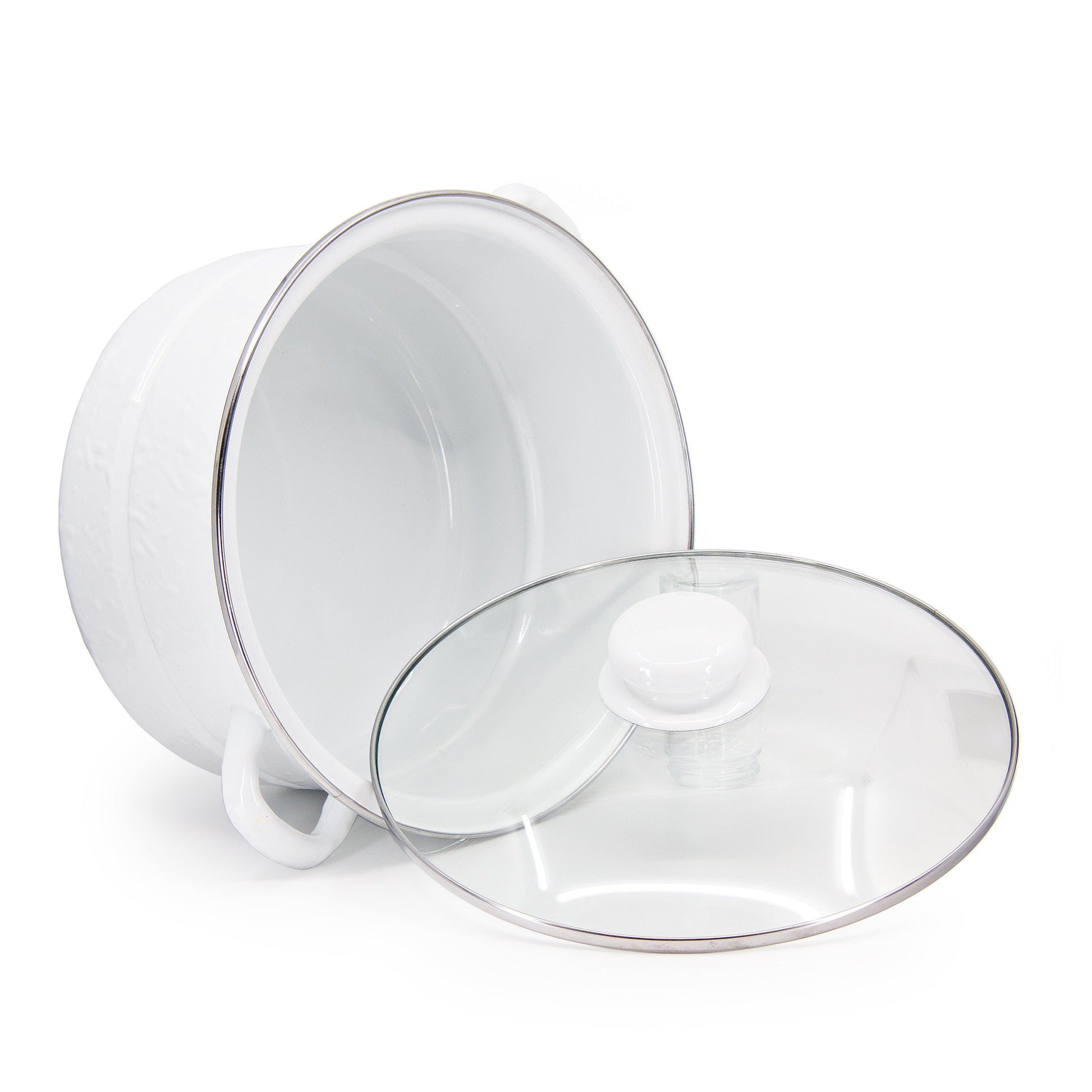 The Solid 6 Qt Stock Pot in classic white is an essential piece for any kitchen, ideal for making hearty soups, stews, or sauces! Crafted from durable enamelware, this spacious pot ensures even cooking and easy cleanup. Elevate your culinary adventures with this timeless and versatile stock pot that seamlessly fits into any decor!