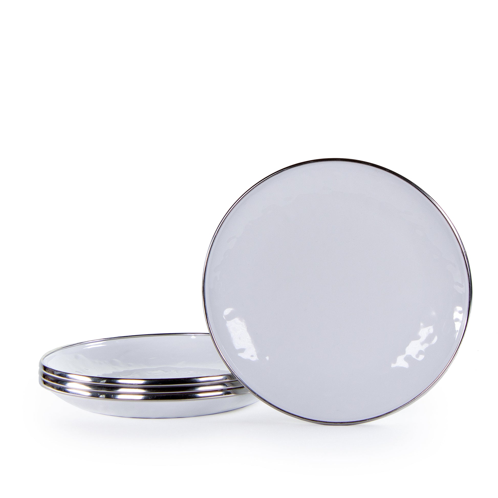 levate your entertaining with the Solid Appetizer Plates Set of 4 in crisp white! These elegant enamel plates are perfect for serving a variety of appetizers, from delicious dips to bite-sized treats. Their classic design complements any table setting, making them ideal for both casual get-togethers and formal occasions. Lightweight and easy to clean, these versatile plates bring a touch of sophistication to your gatherings. Serve your favorite snacks in style with this charming set!