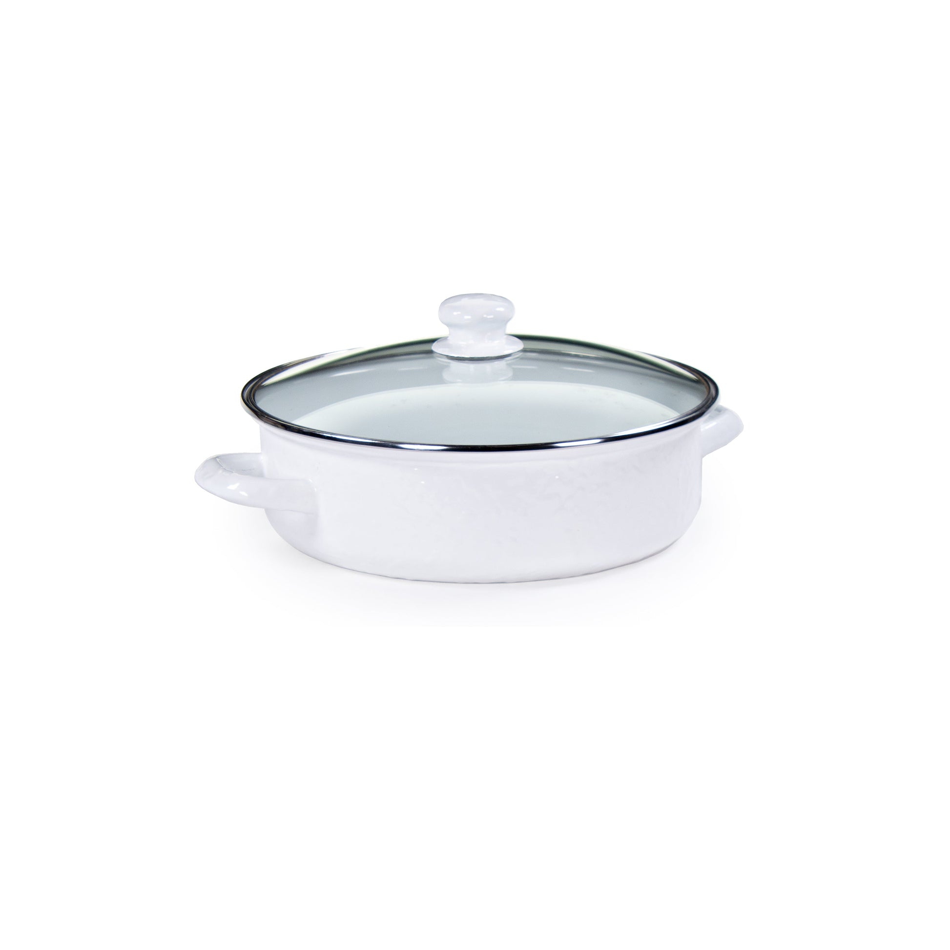 The Solid Small Sauté Pan in classic white is a versatile kitchen essential for everyday cooking! Crafted from durable enamelware, this compact pan is perfect for sautéing vegetables, frying eggs, or making quick meals. Elevate your culinary experience with this stylish and functional sauté pan that seamlessly fits into any kitchen decor!