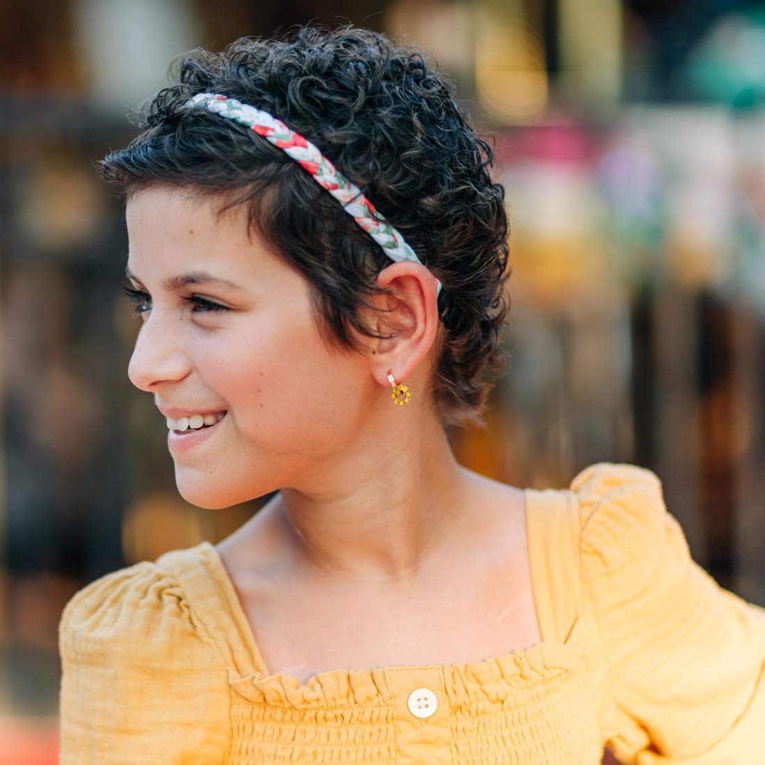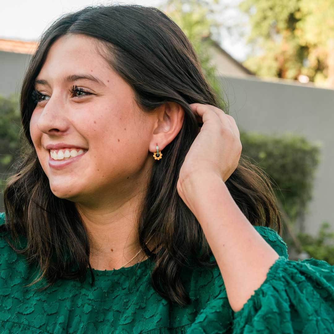 Yellow Flower Huggie Hoop Charms