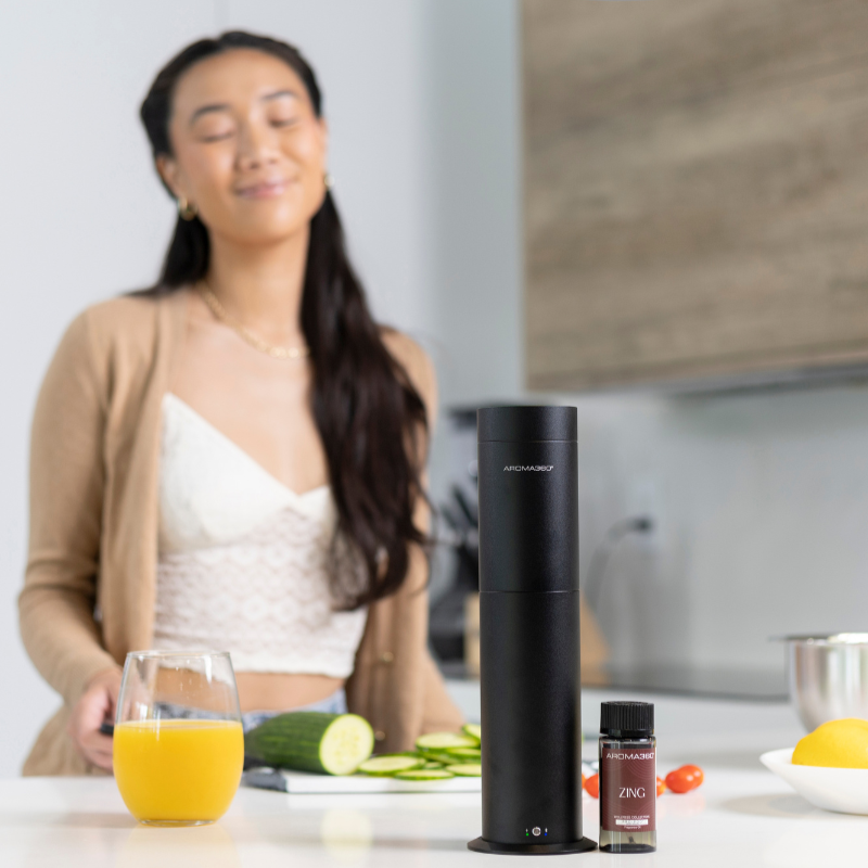 Ignite your senses with Aroma360’s Zing, a wellness must-have for a stimulating and energized atmosphere. Featuring zesty mandarin, uplifting neroli, and grounding musk, this home fragrance oil transforms your space, relieving fatigue and boosting your mood. Infuse your wellness journey with vibrant energy and vitality.
