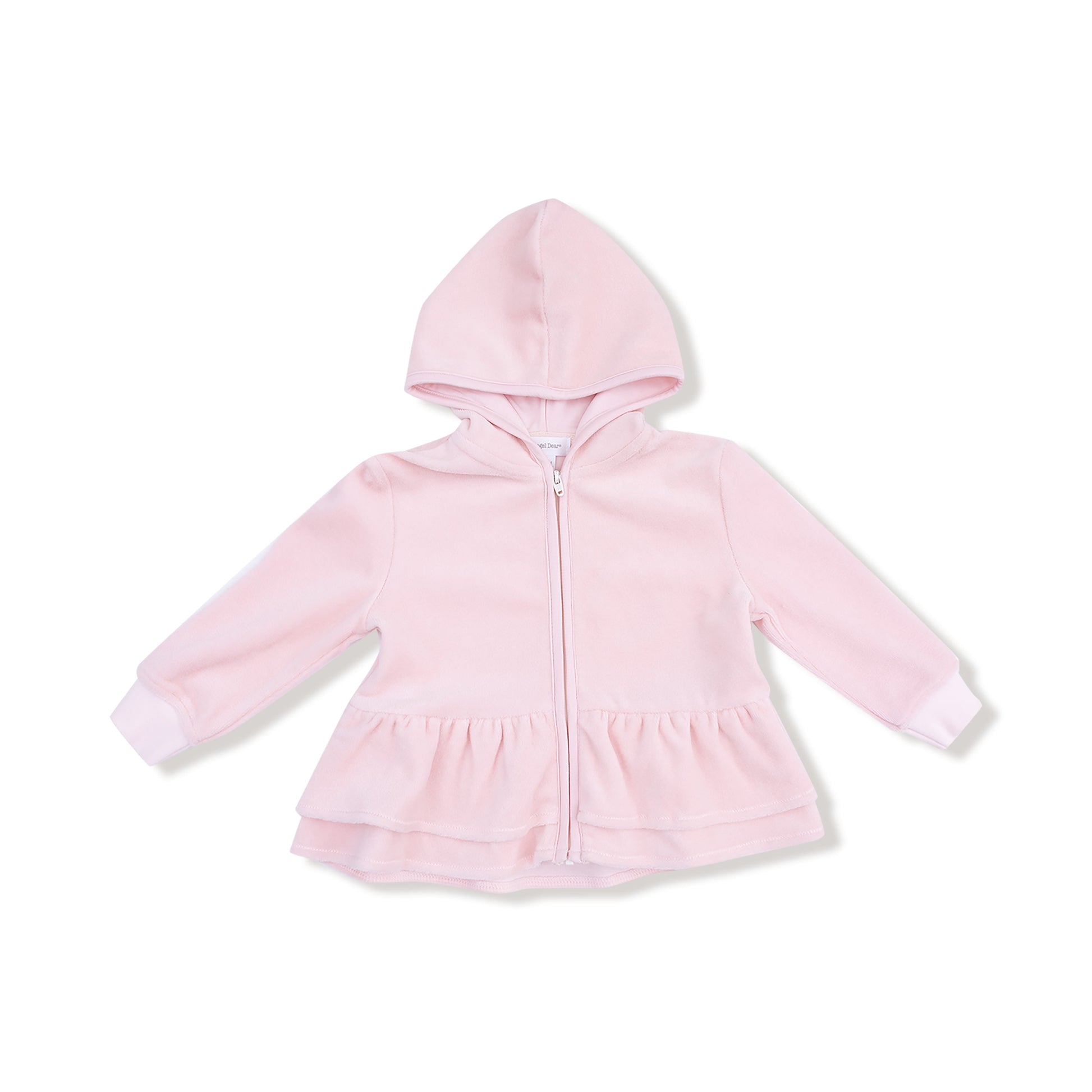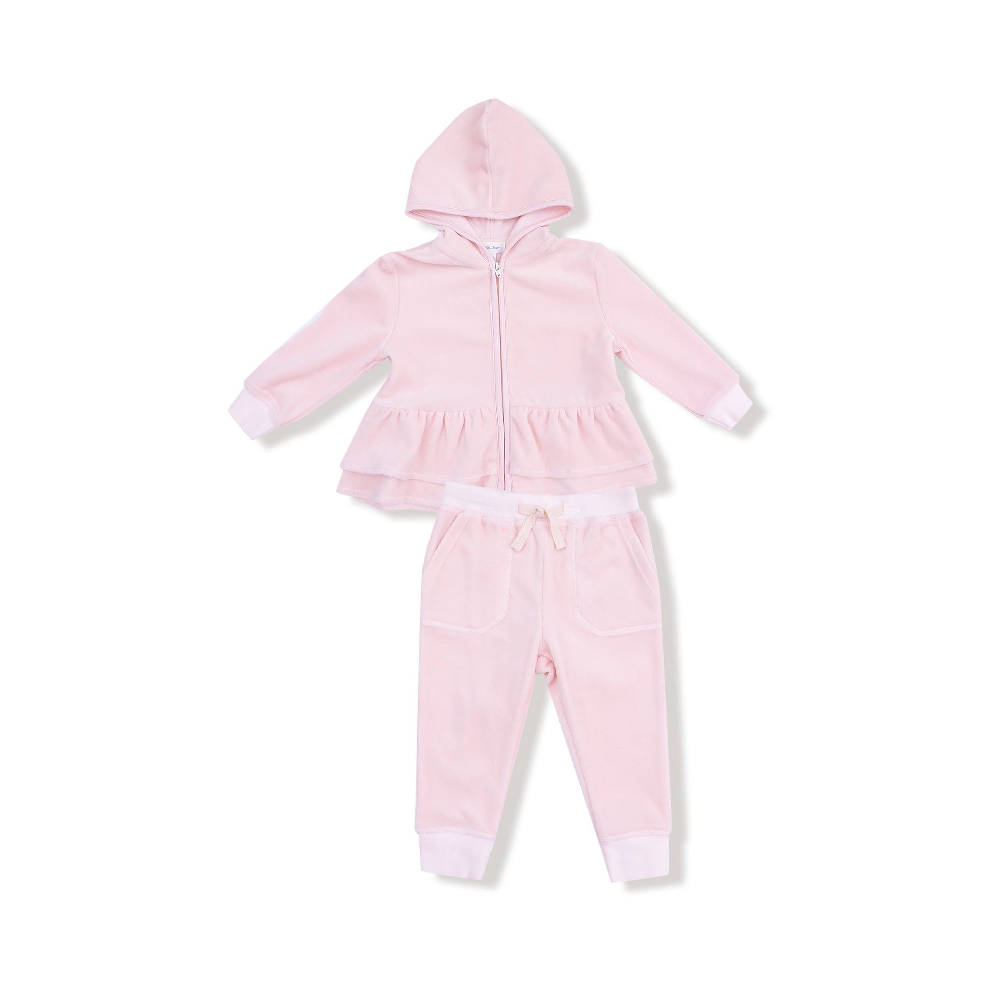 Add a little sparkle to their every day with this cozy-meets-cute velour set! The zip-up hoodie features a sweet peplum hem for extra flair, while the matching joggers have sporty vibes with comfy varsity stripes and a functional drawstring waist. It's the perfect outfit for cozy mornings, playdates, or twirling through the season in style.